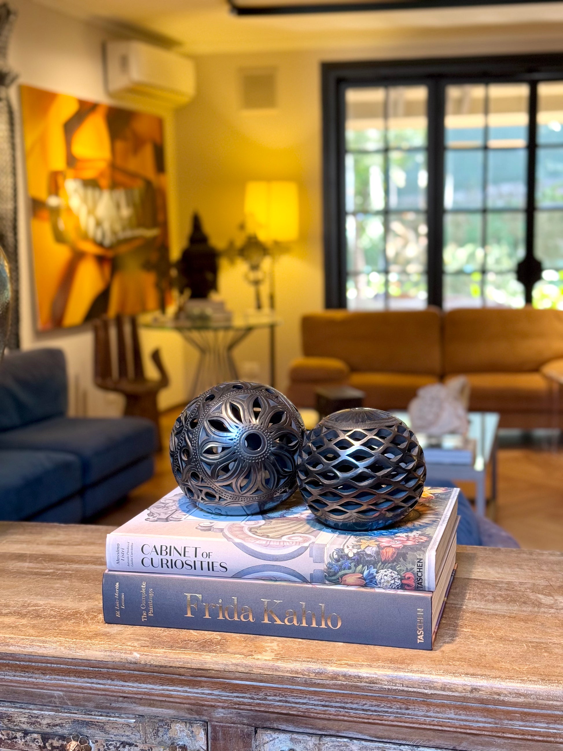 Hechos de barro negro por artesanos en Oaxaca, cada pieza lleva una decoración y detalle único.
